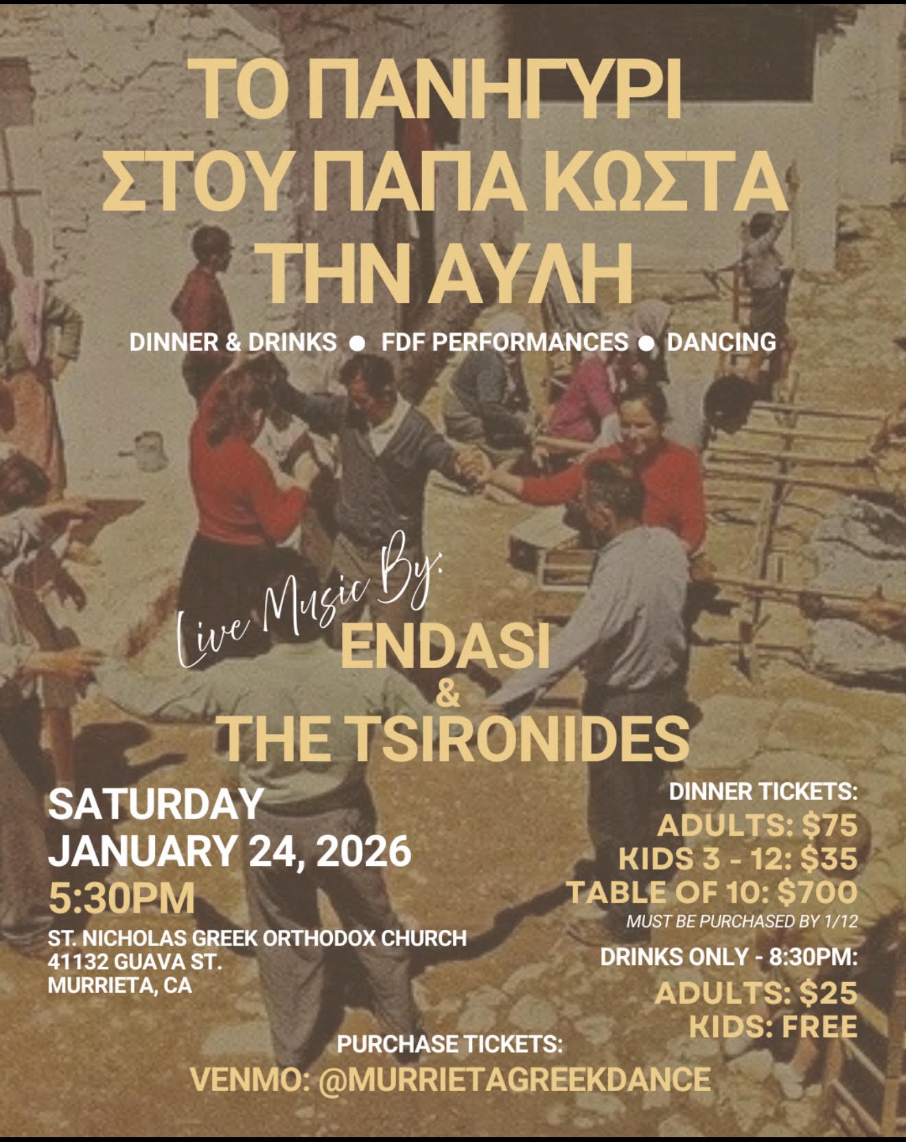 REMINDER: DEADLINE for tickets for our Greek Dance Glendi is January 12, 2026!