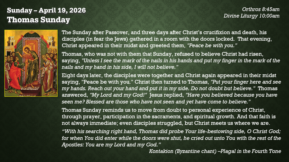 We hope this site gives you a sense of who we are as Orthodox Christians and what we believe about God and His Church.